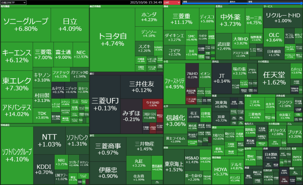 2025年10月6日(月)、まず一番早く開く日経CFDでパニック買いが起こり、東証開場前に一時48512円をつけました。