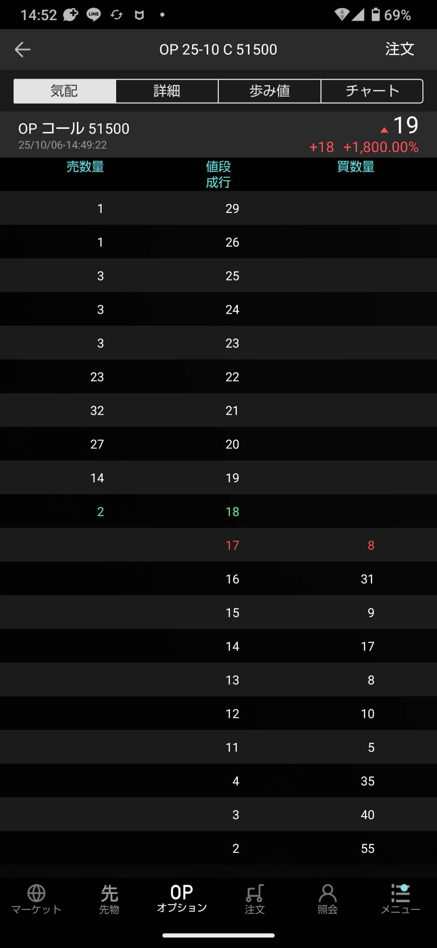 暴騰・暴落ではオプションが話題になりますが、今回はオプションSQ周という事もあり、屑コールが朝一のパニック時に一時3400%(1円→34円=34倍)を付けた後も+1800%(18倍)と高値で推移でした。